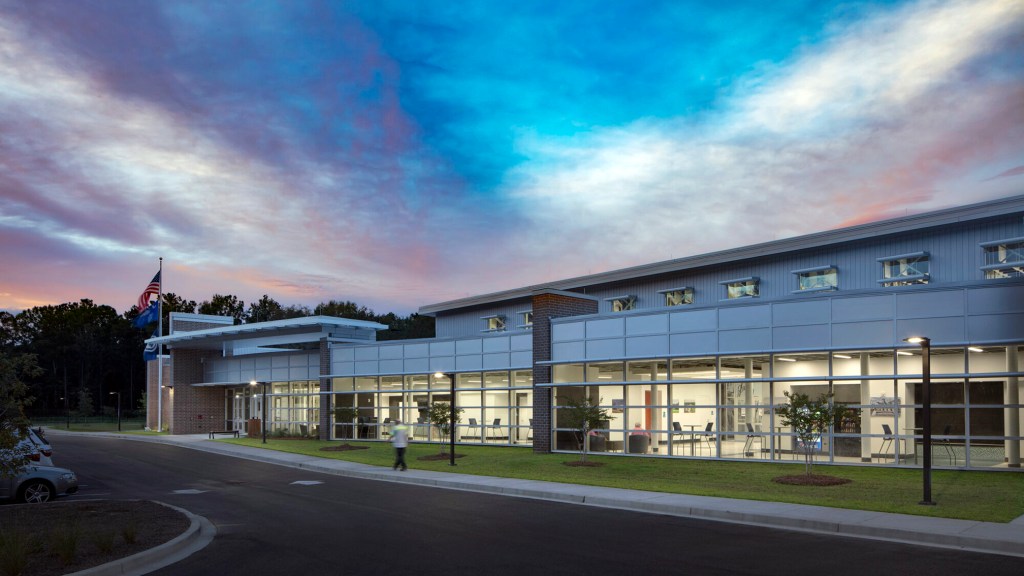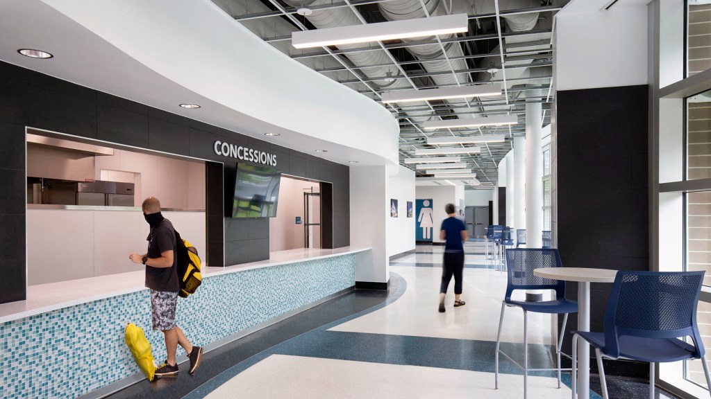 In 2017, the City of North Charleston was looking to upgrade their aquatics facilities that were becoming obsolete. The goal was to create an aquatic center that would rival other regional aquatic centers and also become home of the US Olympic trials. The 45,000 SF aquatic center features a 25-meter therapeutic warm water pool with accessible ramp entry, and a competition 50-meter, 10-lane Olympic pool. The 10-lane pool allows the City to accommodate larger swim meets and can be divided into two 25-meter pools via bulkhead. Spectator seating for 1,000 is retractable which, allows for additional deck area for training sessions. Other amenities included are concessions, a pro shop, locker rooms, and classroom, office, meeting spaces and a grand lobby which accommodates the competition traffic.