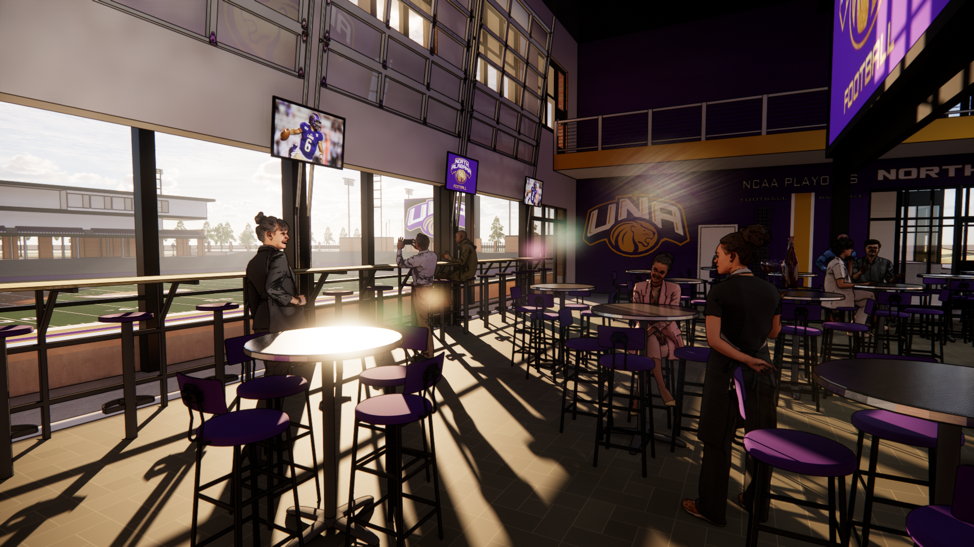 After studying multiple conceptual layouts, the concept of a multi-use stadium flanked by student housing emerged. The initial concept gave the Mammoth design department the green light to dive deeper into the UNA Athletic department’s needs through user group interviews and facility assessments.